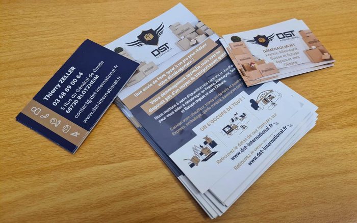 E-NAUMAD collaborant avec plusieurs partenaires locaux, pour compléter le besoin de communication print à ainsi pu équiper en temps record DST International de nouveaux flyers et cartes de visite grâce à l’expertise métier et qualité de service de l’imprimerie Publi-H située à Uffholtz.